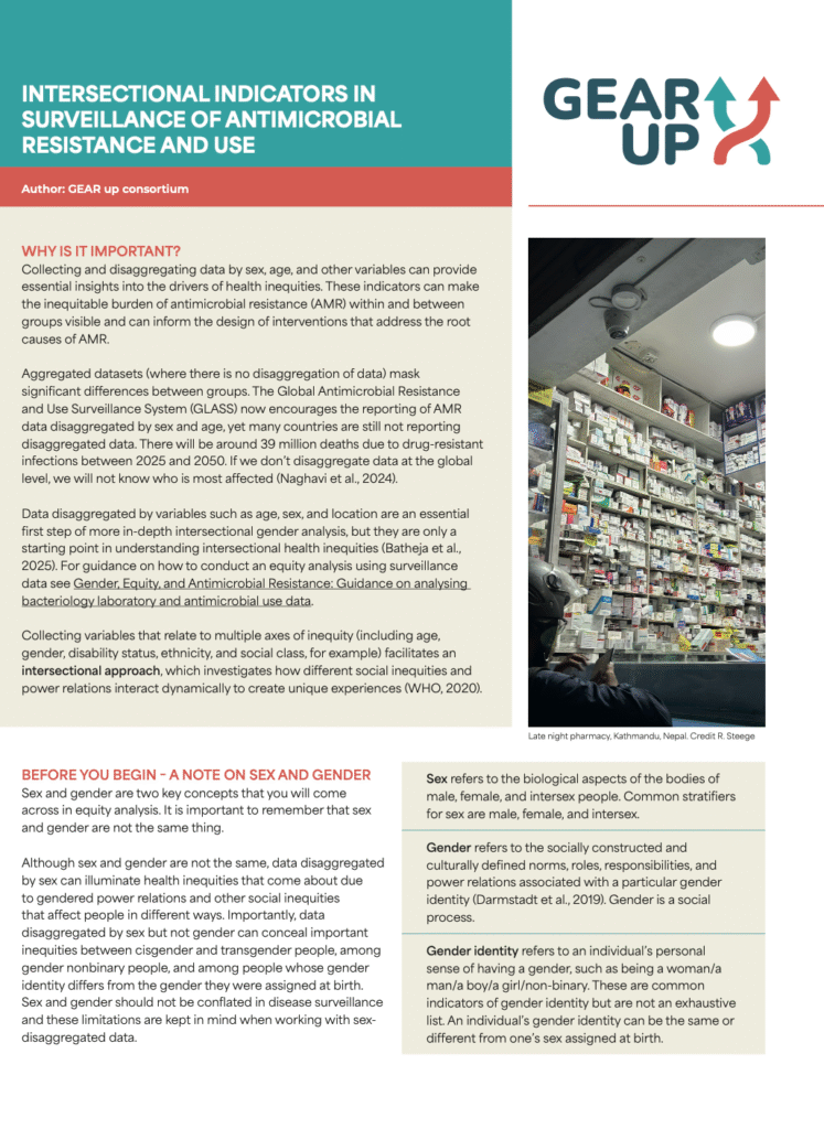 To share experiences on this work, on 29 May 2025, the GEAR up consortium hosted a webinar titled “Understanding an Equity Analysis Using Surveillance Data Experience.” In this session, GEAR up and collaborators presented the step-by-step approach to examine AMR and AMU data through gender and equity lenses, as well as the results from Lao PDR and Tanzania.